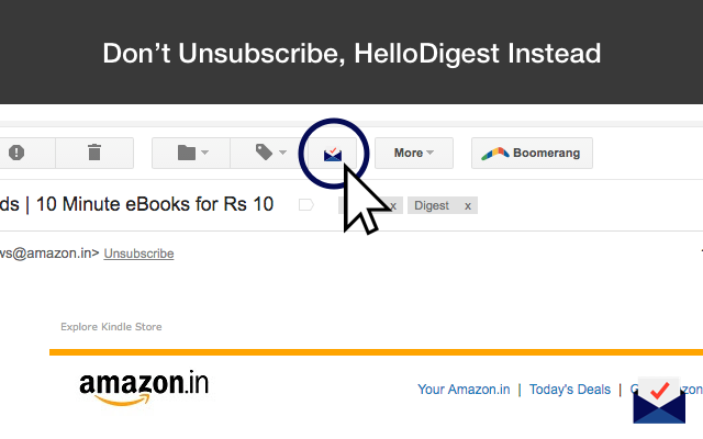 HelloDigest enables you to digest an email directly from Gmail. So when you find a newsletter or a drip email being sent to you, simply digest and forget about it.
