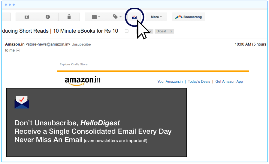 HelloDigest enables you to digest an email directly from Gmail. So when you find a newsletter or a drip email being sent to you, simply digest and forget about it.